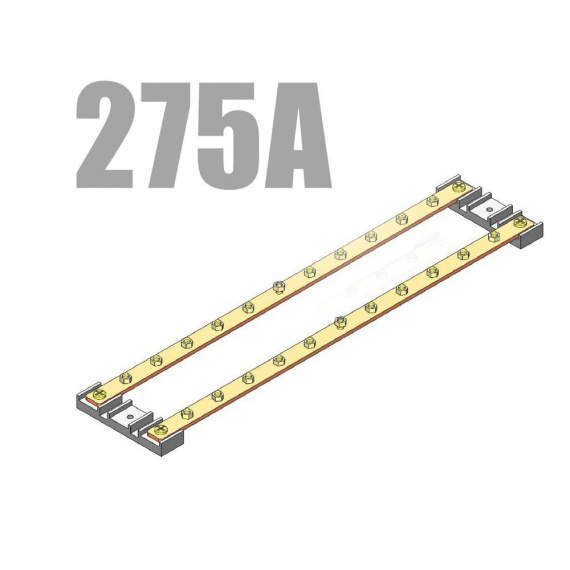 — Шина Power-Earth-Neutral (PEN), подключения - 11(земля)+11(нейтраль), ток 275 А, габариты - 3x20x500 мм;