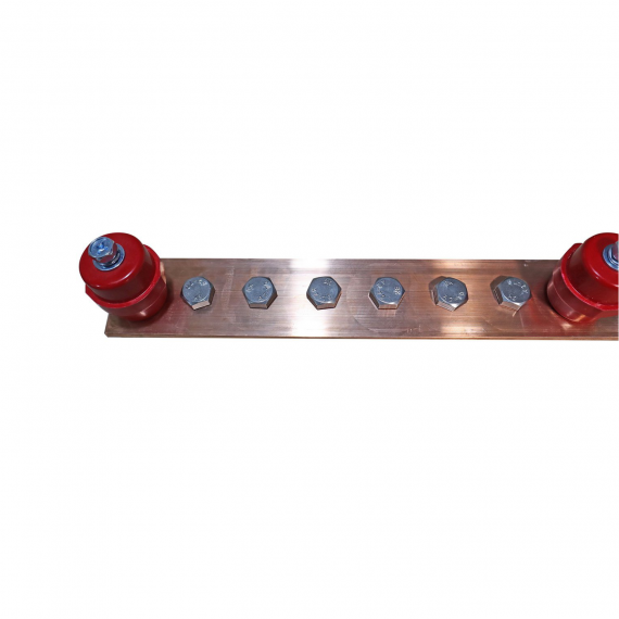 Cabeus CBG-ГЗШ-5.50-12 Главная шина заземления медная (CBG-ГЗШ) 5х50 мм, 12 подключений, 520 мм, три изолятора SM-40, нержавеющий крепеж М10 ток 860 А