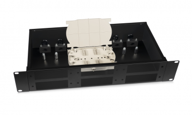 Представляет собой металлический бокс со съемной крышкой. Предназначен для установки в стандартные телекоммуникационные шкафы и стойки формата 19”. Кросс имеет 4 кабельных ввода в задней части, снабженных резиновыми манжетами. Для фиксации кабеля и силового элемента, внутри кросса, конструкцией предусмотрены специальные фиксирующие зажимы. Внутри кросса располагаются сплайс-кассеты для укладки запаса оптических волокон и крепления гильз КДЗС. Оптический кросс поставляется без адаптерных панелей, гильз КДЗС и оптических адаптеров. Возможность установить до 48 оптических адаптеров (максимально 96 оптических волокон).