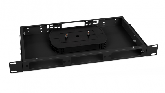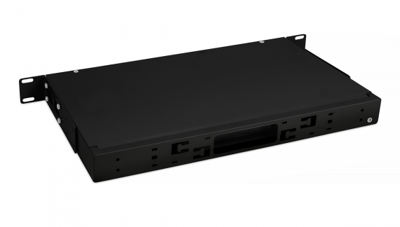 Представляет собой металлический бокс высотой 1U со съемной крышкой и сменными адаптерными панелями. Предназначен для установки в стандартные телекоммуникационные шкафы и стойки формата 19”.