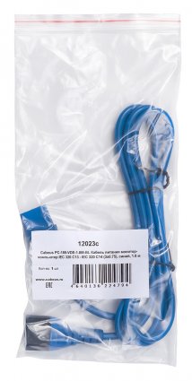 Cabeus PC-189-VDE-1.8M-BL Кабель питания монитор-компьютер IEC 320 C13 - IEC 320 C14 (3x0.75), синий, 1.8 м