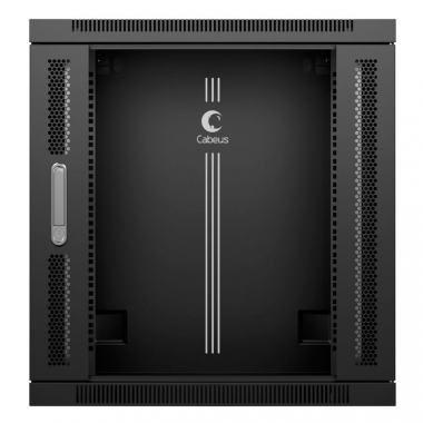 Cabeus SH-05F-15U60/35-R-BK Шкаф телекоммуникационный настенный разобранный 19" 15U 600x350x769mm (ШхГхВ) дверь стекло, цвет черный (RAL 9004)