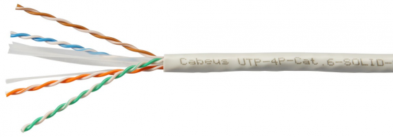 Cabeus UTP-4P-Cat.6-SOLID-LSZH-WH Кабель витая пара UTP (U/UTP), категория 6, 4 пары (23 AWG), одножильный, LSZH нг(А)-HF, белый (100 м)