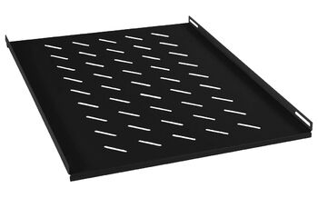 Стационарная полка четырехточечного крепления предназначена для установки в открытые стойки Cabeus. Используется для размещения технологического оборудования, не имеющего стандартного 19” крепления. Полка имеет перфорацию, позволяющую охлаждать технологическое оборудование. Максимально разрешенная нагрузка – 45 кг. Покрытие – порошковая ударопрочная краска, черная (RAL9004). Толщина стали составляет 1,3мм. Установка стационарной полки в стойки Cabeus производится путем крепления к внутренней части направляющих рам с помощью стандартного крепежа – квадратных гаек, винтов М6 и пластиковых шайб.
